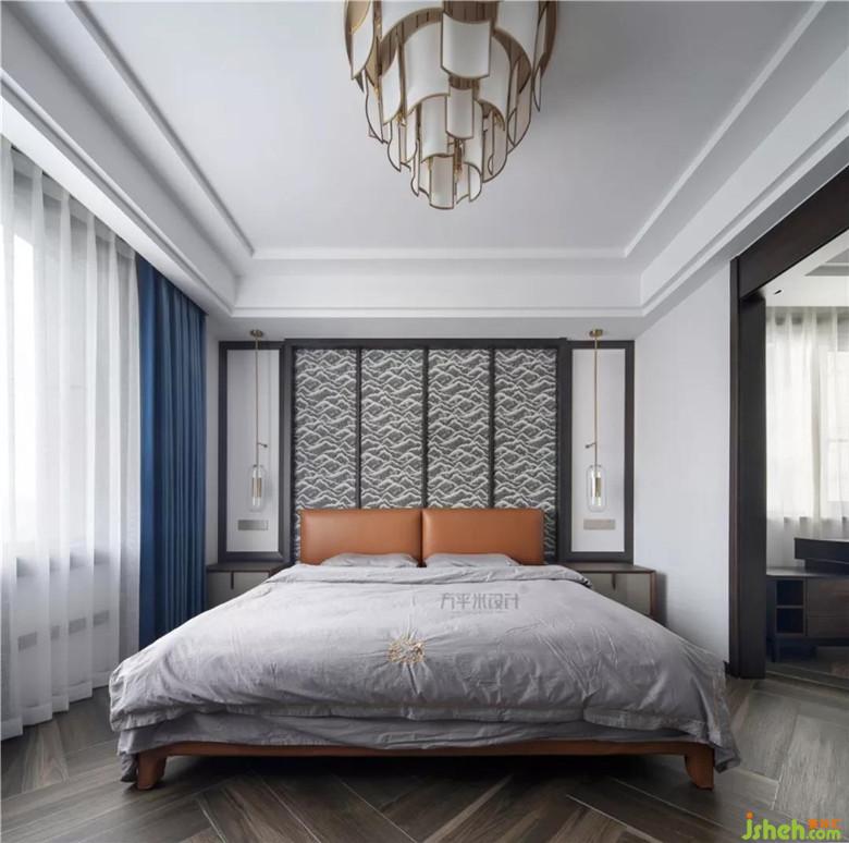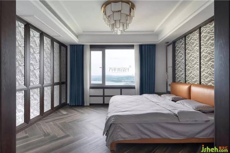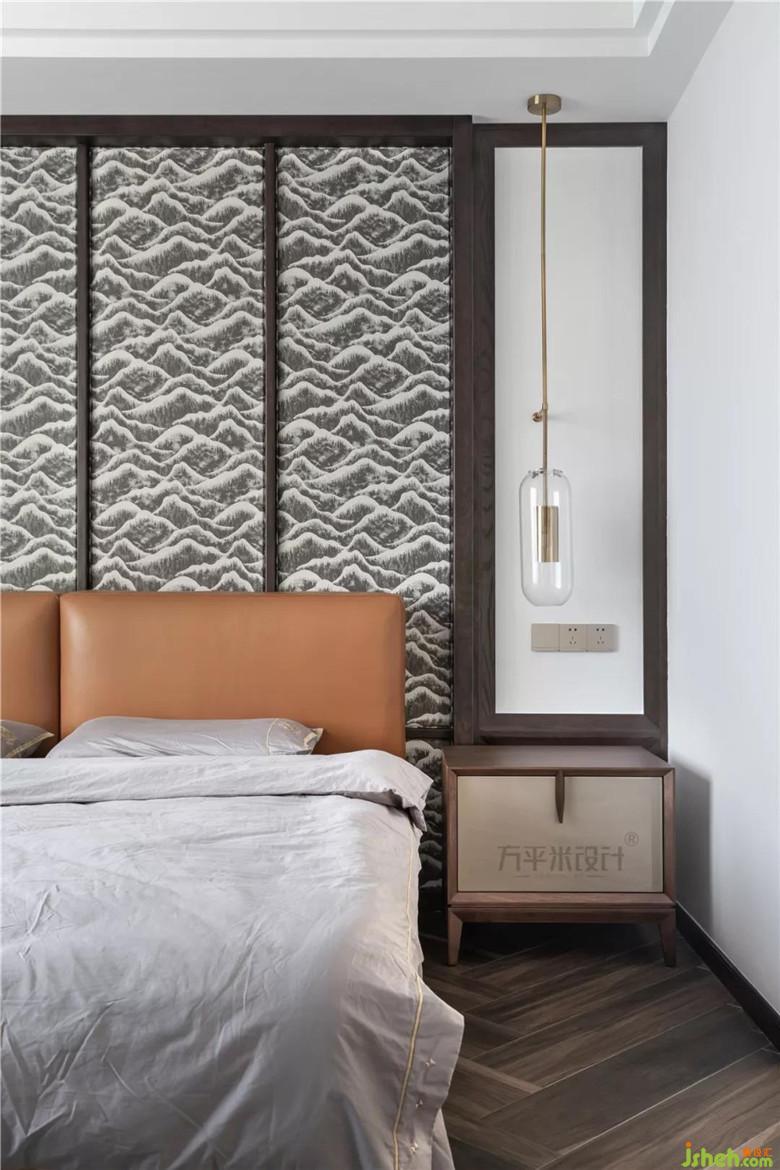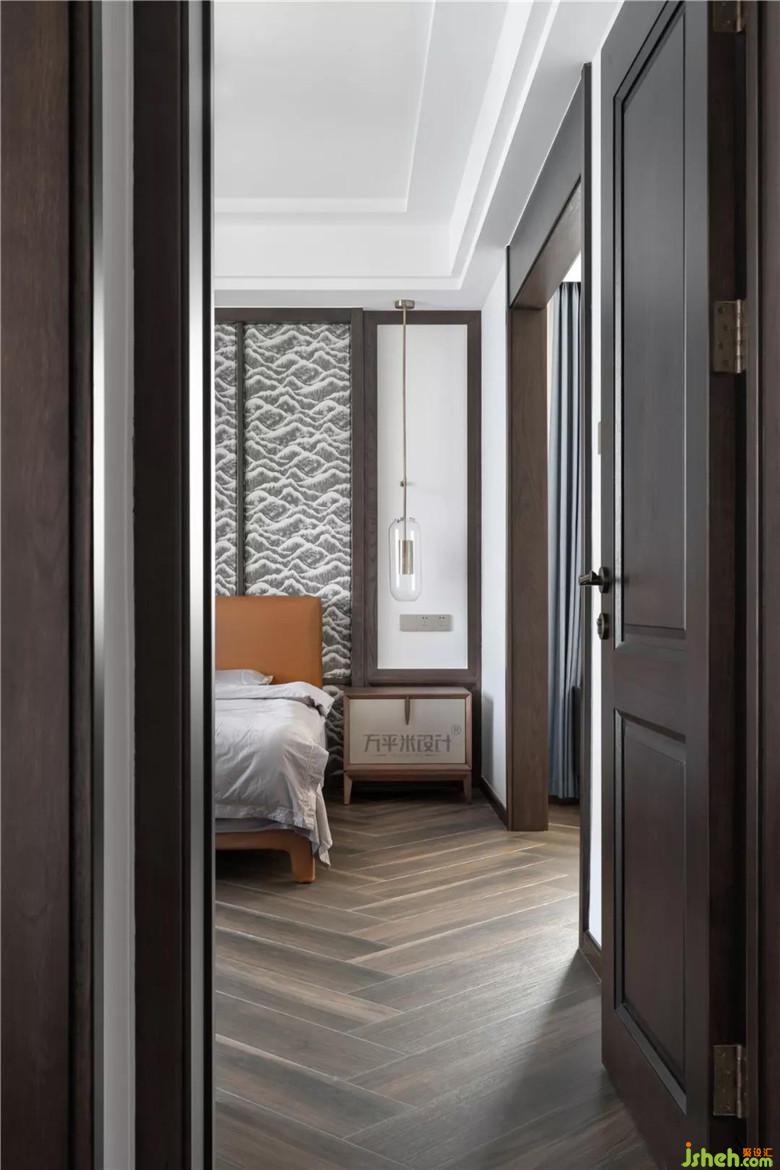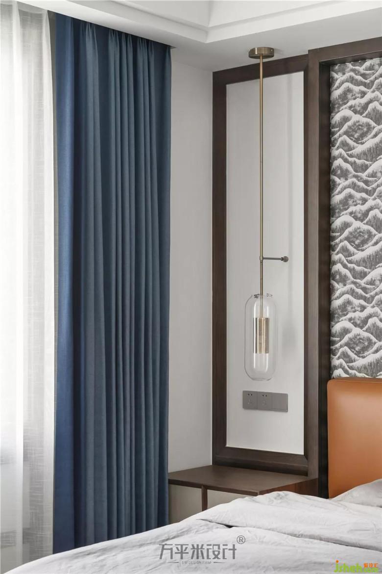 移步至功能齊備,尺寸寬敞的主臥套間。主臥床頭采取定制原木線框與布質(zhì)硬包相結(jié)合,兩側(cè)留白。地面大尺寸直紋木紋磚人字形鋪貼。靜謐的純色窗簾營造安靜的睡眠環(huán)境。安靜的色彩語言及棉麻天然質(zhì)感傳達出對自然質(zhì)樸的品味與訴求。