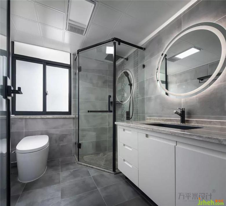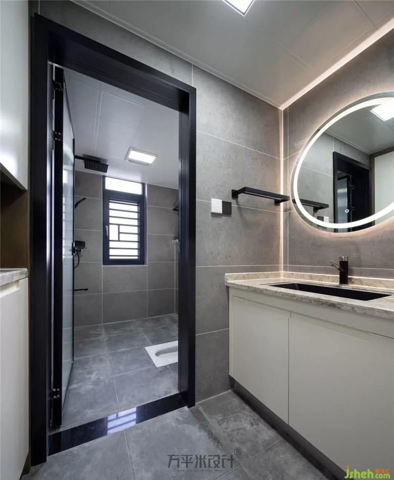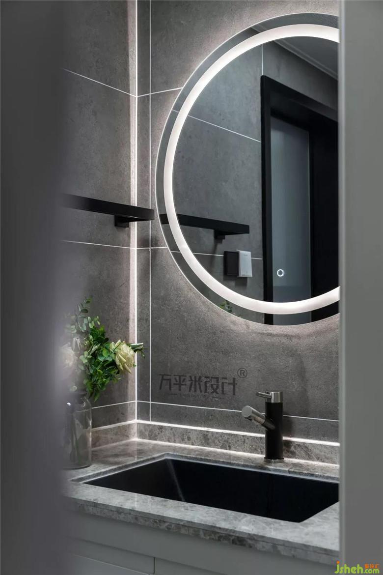 主臥的衛(wèi)生間和外用的衛(wèi)生間在風格上相統(tǒng)一,都采用了灰色啞光大理石,不僅質感高級更考慮到了使用的耐臟性,設計的高低儲物柜可存放日化洗漱用品。裝修需要設計,不僅是為了追求視覺的美感,而是在細節(jié)上以生活功能性為基礎,再做美學延伸。