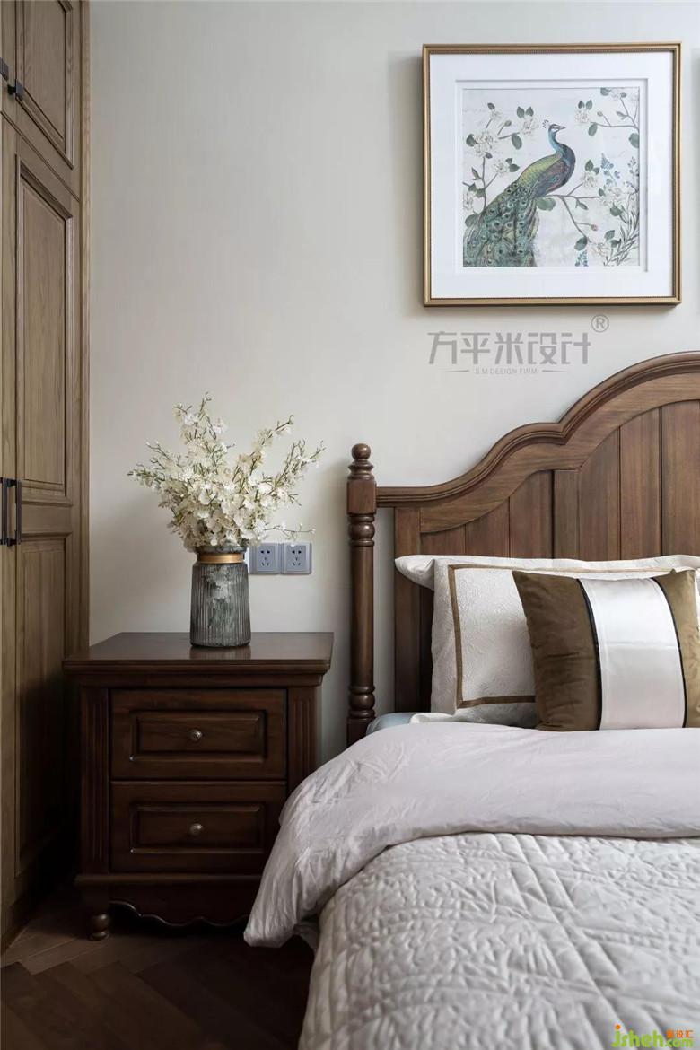 父母房的設(shè)計(jì)簡潔實(shí)用,偏于老年人的喜好,沉穩(wěn)的栗色搭配米咖色的柔和,溫馨舒適。雙層印花窗簾保證了睡眠的遮光度,讓父母每晚都可輕松入睡。