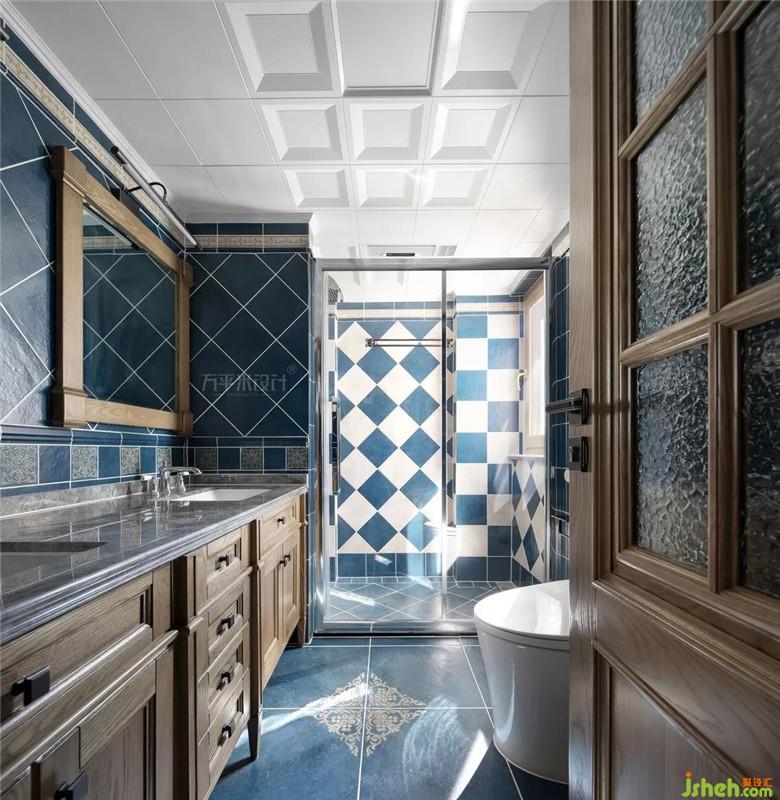沐浴是一件很享受的事情,孔雀藍瓷磚綴以方形白色,搭配定制雙盆洗漱臺,整體色調(diào)帶著歷史的古樸和亮眼的別致。或許這里并不需要伴隨著奢華,自在隨心便能放松身心,釋然一天的疲憊。