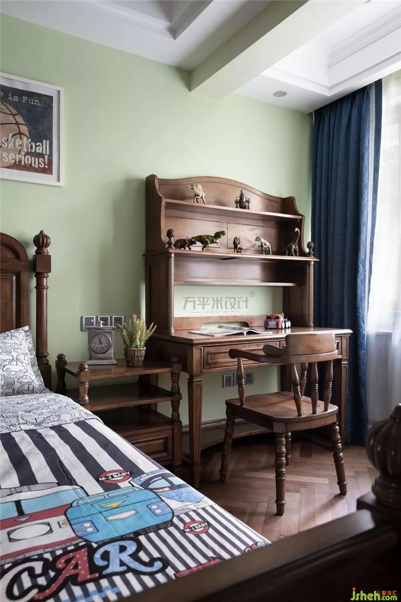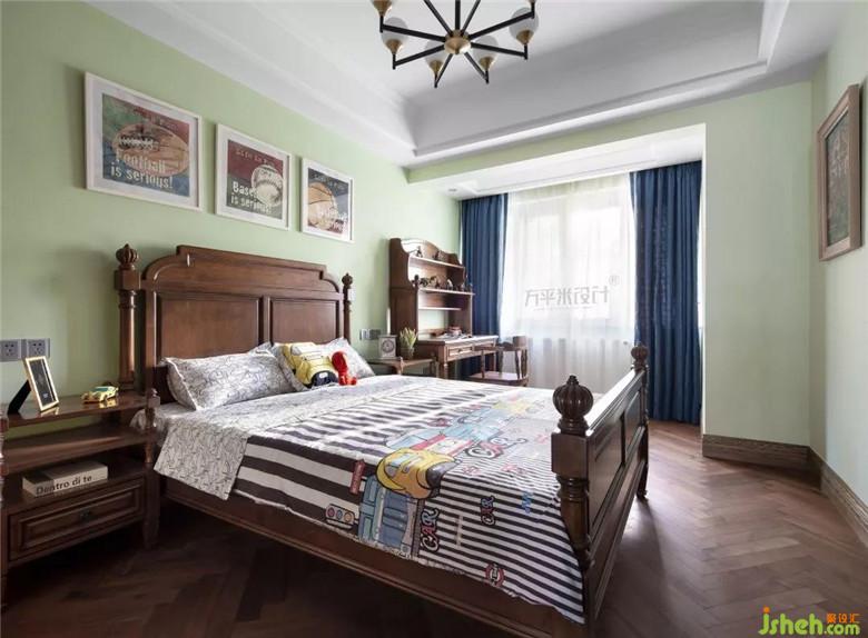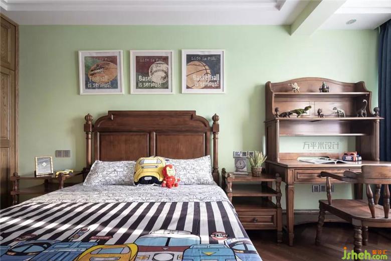 每個男孩子的童年都會有著英雄情結(jié),幻想自己可以成為超人。屋主家兩個寶貝都是男孩,哥哥弟弟所愛的除了木馬搖搖椅之外,還有對漫威英雄的熱衷。薄荷綠的背景墻上掛著橄欖球、網(wǎng)球和籃球的裝飾畫酷感十足,兩個孩子受到父親愛好運動的影響,也會成長為陽光向上的大男孩兒。