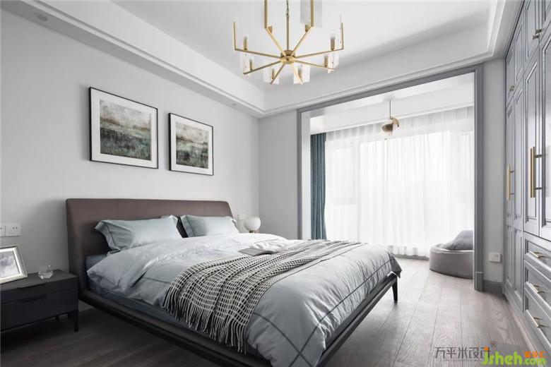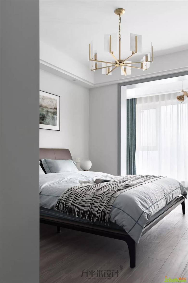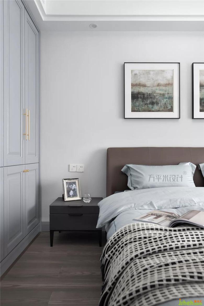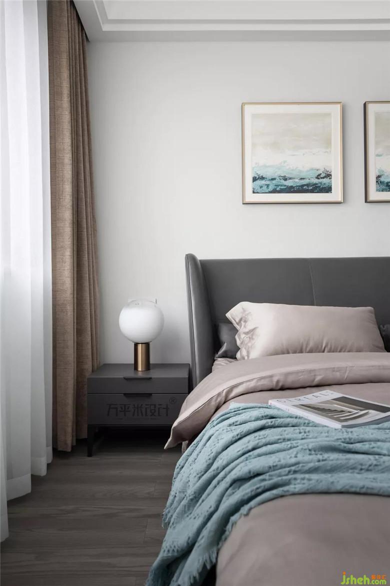 床頭背景設(shè)計(jì)極為素雅簡(jiǎn)單,以與柜體豐富造型形成反差,避免空間壓抑感。