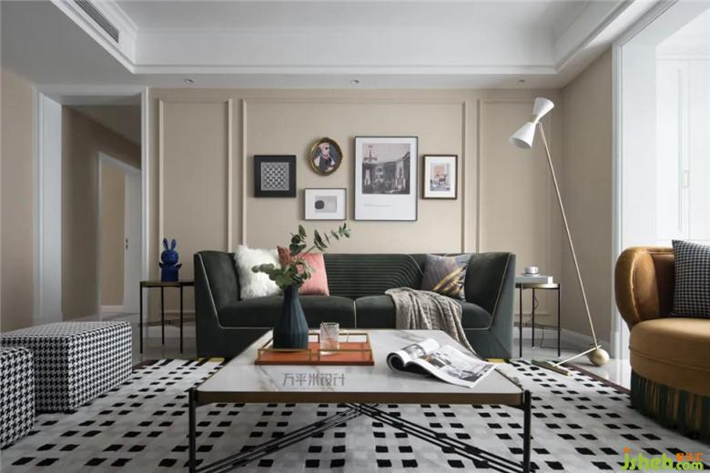 精選姜黃色單椅,千鳥格坐凳,幾何地毯物件,演繹活潑不沉悶的生活調性。同時局部點綴金屬裝飾起到提升細節(jié)精致度的作用。