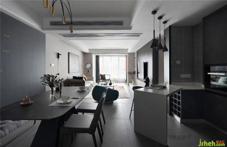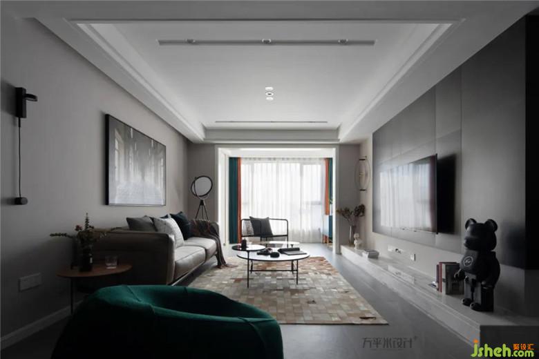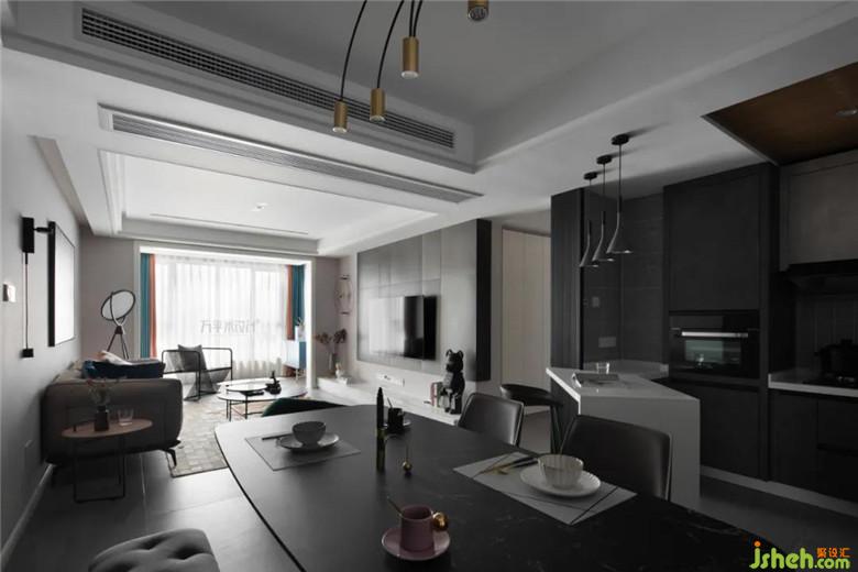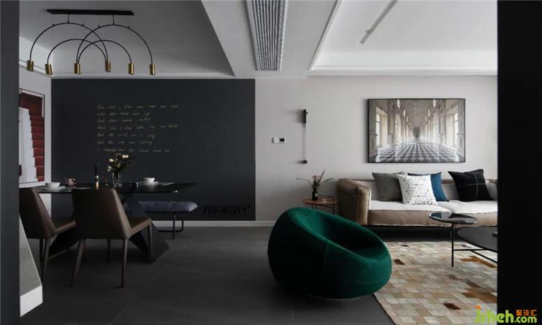 裝修公司以明暗色塊劃分區(qū)域,形成鮮明的質(zhì)感對(duì)比。選擇中性色調(diào)的木地板,弱化其存在感,突出硬裝與軟裝間的搭配。