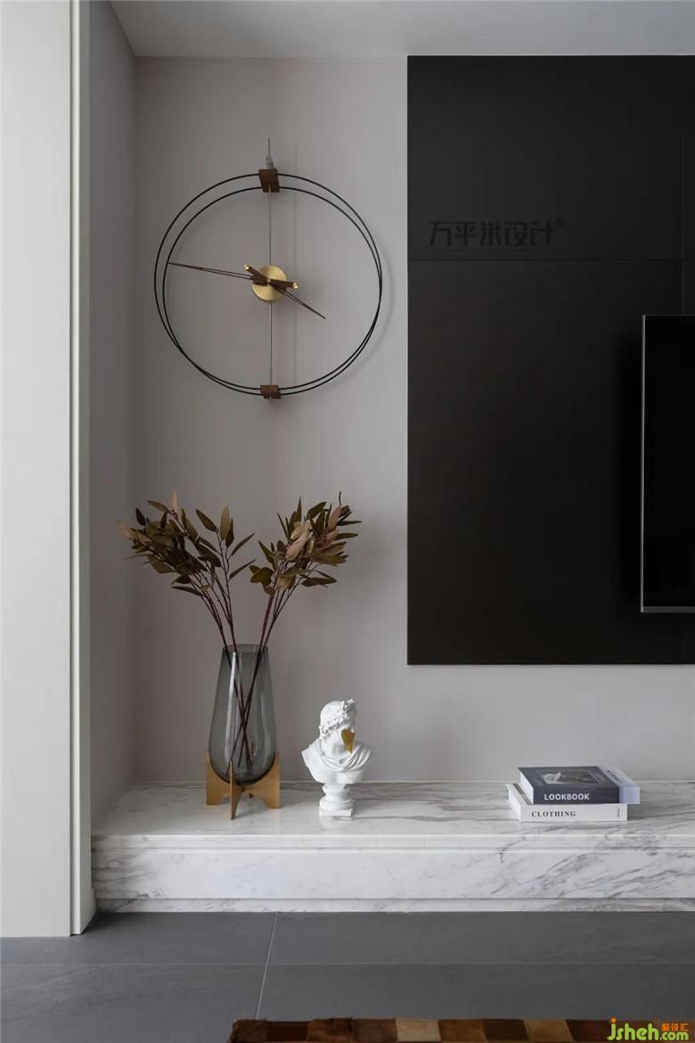 一字型溝槽的嵌入式筒燈及中部的內(nèi)藏式射燈作為客廳的主要光源,在視覺上顯得空間更加開闊。造型各異的壁燈及落地?zé)舻碾鼥V光感,在灰階環(huán)境中增添溫暖氣氛,使慵懶的居家氣息蔓延至每一角落。