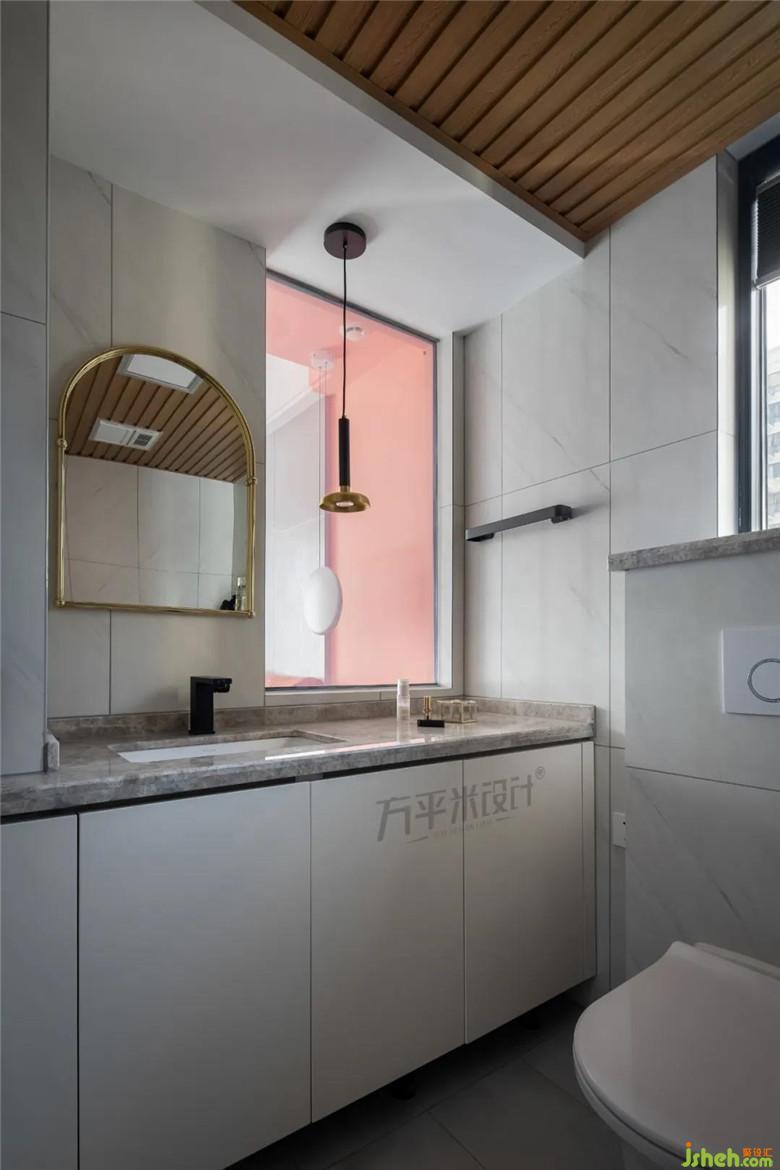 衛(wèi)生間不同材質(zhì)混搭刻畫(huà)出肌理,明暗的變化。營(yíng)造寬敞干凈的視覺(jué)感,也利于日常衛(wèi)生清潔。