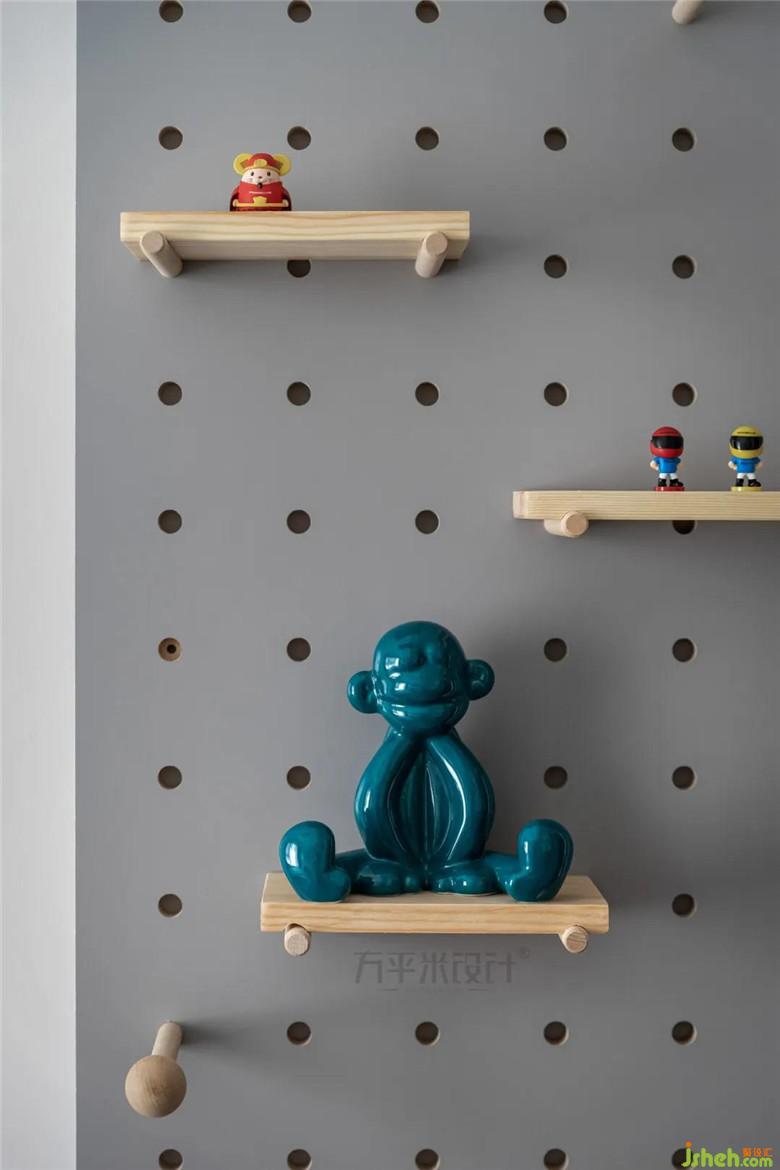 墻上的洞洞板,便于孩子掛上自己喜歡的玩具和小裝飾等,增加空間的趣味性。