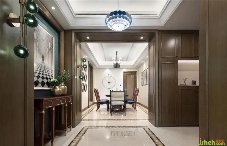 裝修公司為了避免整體色調(diào)過(guò)于厚重,添置肅穆不失浪漫的西方殿堂畫及錯(cuò)落有致的環(huán)形燈具抹去負(fù)擔(dān)感,帶來(lái)柔雅且安穩(wěn)的平衡美感。