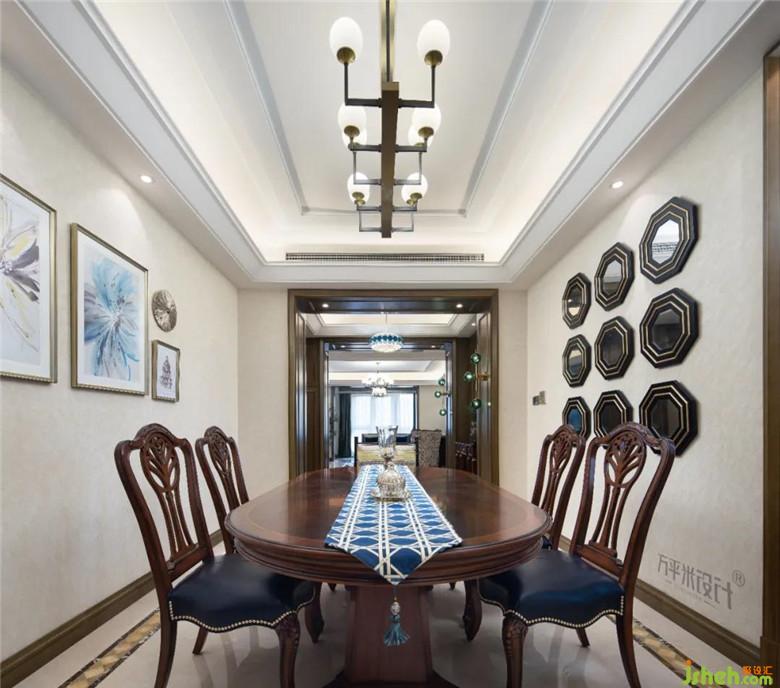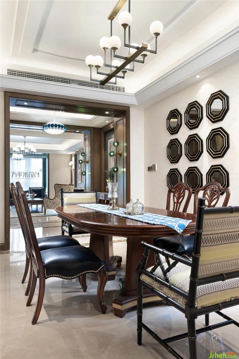 裝修公司設(shè)計(jì)過(guò)程中繼承著傳統(tǒng)文化思想,特意搭配兩把中式造型餐椅與美式家具進(jìn)行混搭,其內(nèi)在的東方韻味與木色調(diào)的質(zhì)樸感相交織,刻畫出不同文化之間的沖突感,顯現(xiàn)出時(shí)代的印記。