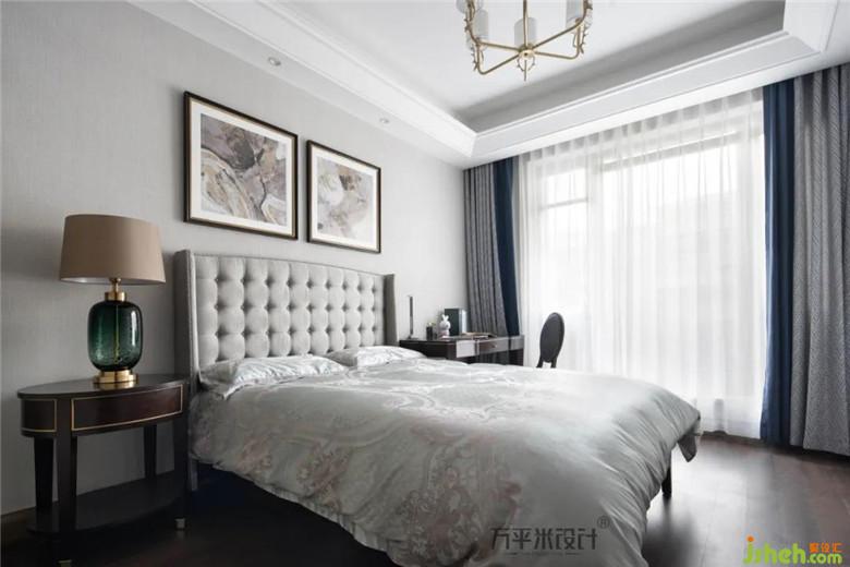 原有硬裝趨于簡(jiǎn)單,軟裝則融合部分輕復(fù)古的木質(zhì)元素及美式線條,以潑墨形式的裝飾畫(huà)和金屬質(zhì)感吊燈讓空間簡(jiǎn)潔明朗具有層次感。