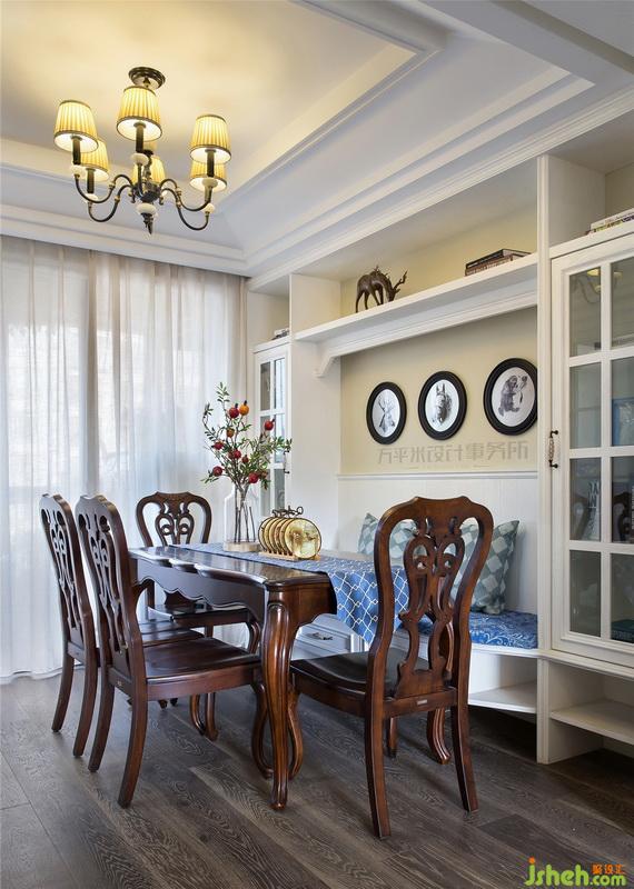 ▼ 餐廳原有空間較小,因此 室內(nèi)設計師設計了集收納、展示、座椅為一體的儲物式卡座。為進出生活陽臺及廚房的動線行走留出寬敞通道。