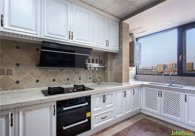 ▼ 室內(nèi)設計師將生活陽臺的小部分擴充并入廚房,提升面積及實用程度的同時,也從大面積采光窗引入明亮自然光線。純白櫥柜清爽整潔,洗切炒盛的動線合理。