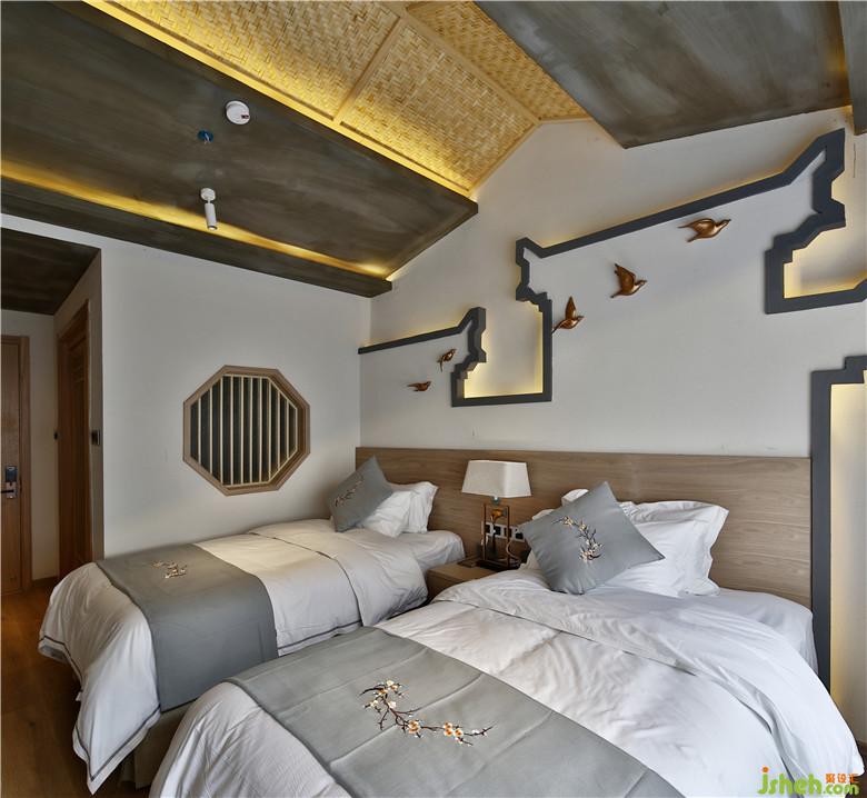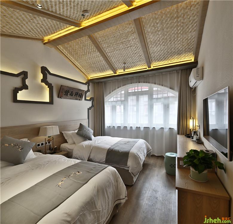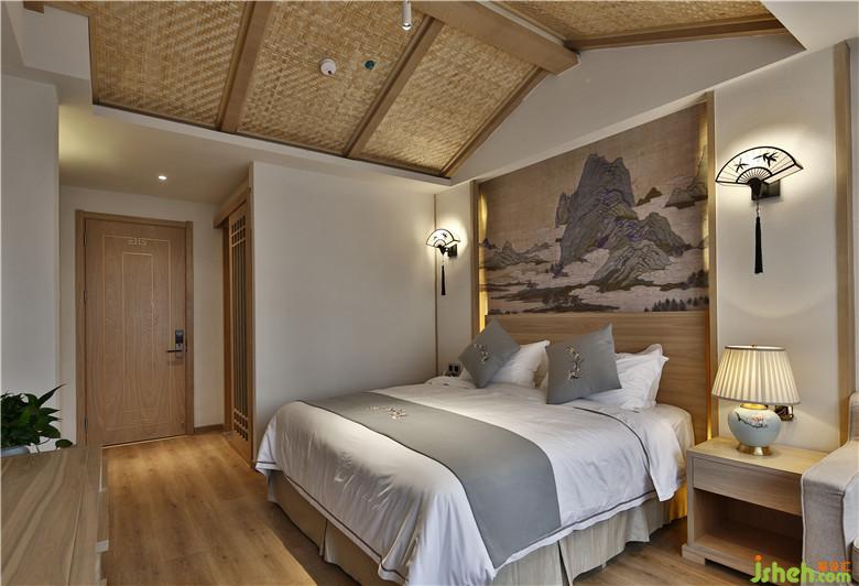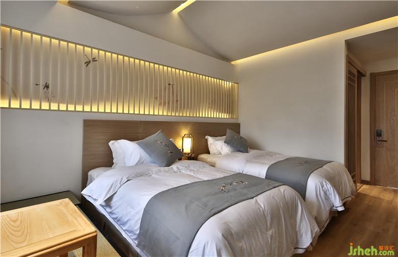 客房,小巧精致。白色的墻面之上可見禪意壁燈,搭配木制家具,盡顯典雅的禪意之美。