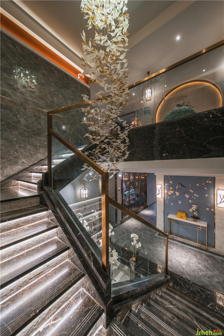 二樓充分利用原有建筑結(jié)構(gòu),采用大膽而簡潔的處理手法,整體的灰色墻體與紅色凹凸面形成鮮明的對(duì)比,延伸至頂面的白色吊頂,室內(nèi)設(shè)計(jì)師完美整合原始空間結(jié)構(gòu),兼顧實(shí)用與美學(xué)。通過吊燈與壁燈的搭配使用,恰到好處地將虛實(shí)關(guān)系勾勒出來。