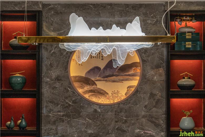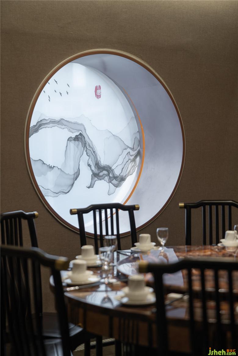 跳躍的紅色結(jié)合異形的結(jié)構(gòu),形成了一個(gè)個(gè)動(dòng)態(tài)的內(nèi)飾,十分搶眼。簡潔的射燈為紅色墻面增添了幾分靈動(dòng)與跳躍,不但成為活躍空間氣氛的亮點(diǎn),而且避免了大面積鋪陳所帶來的壓抑感,一定程度上實(shí)現(xiàn)了空間的視覺擴(kuò)容。餐廳設(shè)計(jì)
