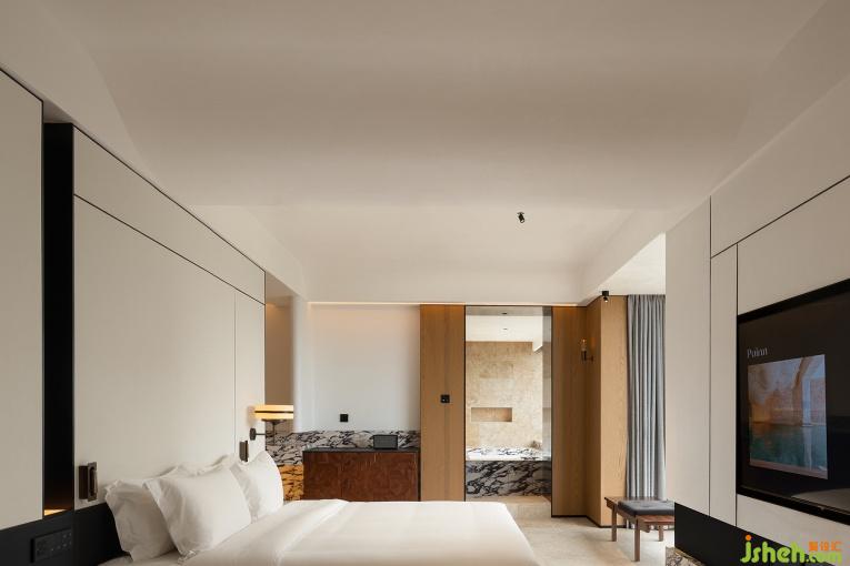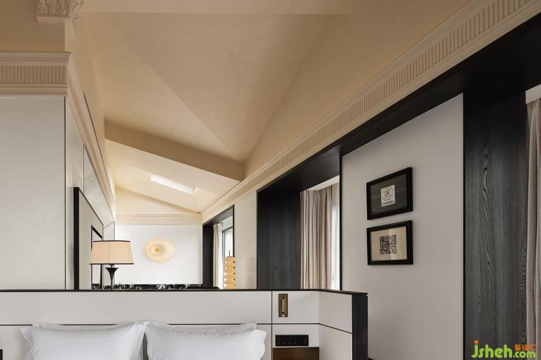 黑白風格客房,則是現(xiàn)代設計手法的完美詮釋,簡約優(yōu)雅的黑白兩色的極致運用。