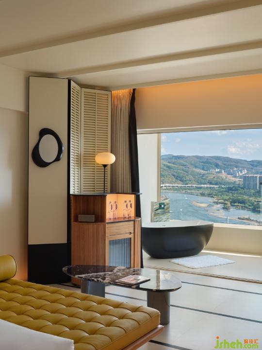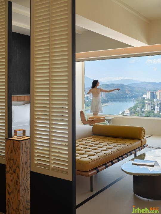 特別設(shè)計的陽臺與泡池是這一空間的點(diǎn)睛之筆,住客可以在此俯瞰瀾滄江,將無垠的江景盡收眼底?!敖魍疝D(zhuǎn)繞芳甸,月照花林皆似霰”——酒店的現(xiàn)代摩登設(shè)計仿佛在編織一場既超然又令人難忘的夢境。