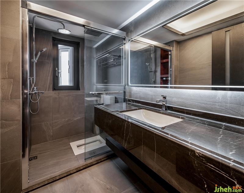 衛(wèi)浴間主要材質(zhì)為大理石,拋開一切冗余的元素只以簡單的線條彰顯優(yōu)雅格調(diào),注重一線一點一面及其細節(jié)處理,呈現(xiàn)一種感官上的極致簡潔。