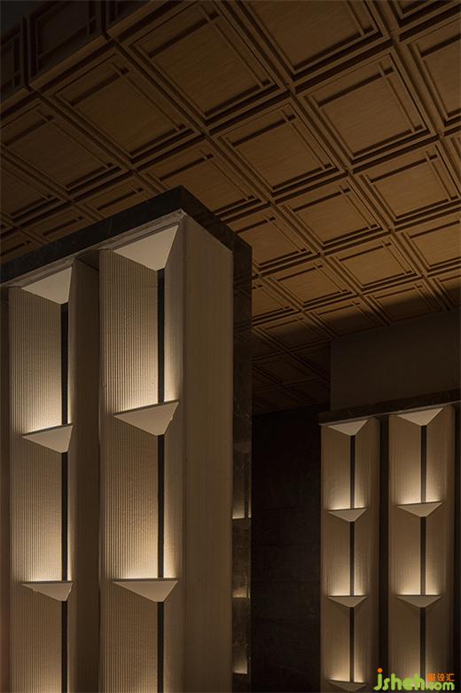 餐廳設(shè)計坐落在北京國貿(mào)CBD的用餐空間以竹林為屏障,被營造成為一個與外界暫時“斷聯(lián)”的場域空間。車水馬龍的喧囂留在了庭院之外,在屋內(nèi)的曖昧與陰翳之中,精心炙烤的頂級食材,搭配秘制的蘸汁,在口腔中肆意的奔騰,帶領(lǐng)饕客翻越地理與邊界的藩籬,達(dá)到味覺的至高國度。