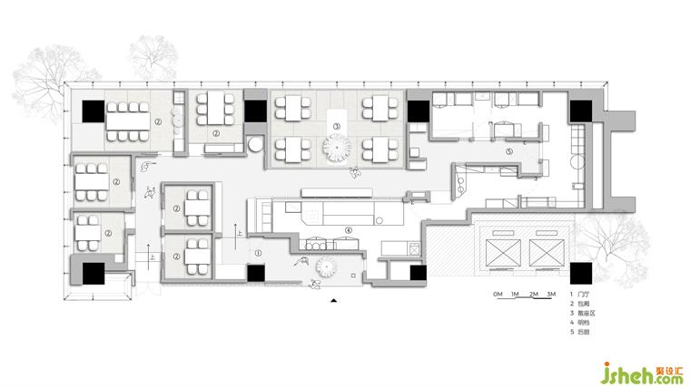 在這里,人們經(jīng)由眼前客觀之物得以與對(duì)大千世界的萬(wàn)事萬(wàn)物的感悟相連,在時(shí)間的流逝中,真正的欣賞空間之美、感嘆純粹的食物之靈,這也這正是設(shè)計(jì)師希望在傲鰻的空間中傳遞的場(chǎng)所精神所在。