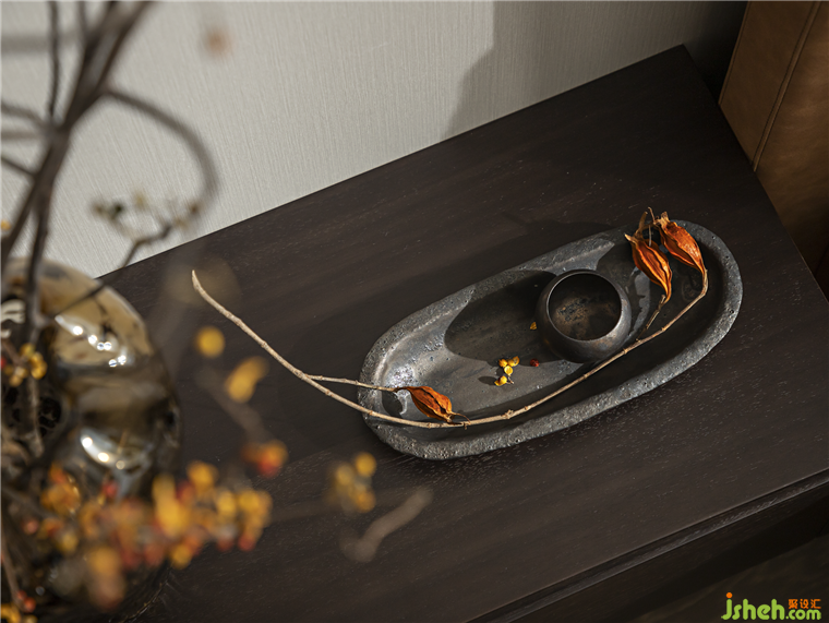 陽(yáng)光灑入,自然靈動(dòng),空間的質(zhì)感和溫感漸次顯現(xiàn);富有肌理語(yǔ)言的藝術(shù)掛畫(huà)搭配黑色原木梳妝臺(tái),樣板房設(shè)計(jì)在柔軟與硬朗的質(zhì)感交錯(cuò)中,勾勒出靈活多變的空間尺度。