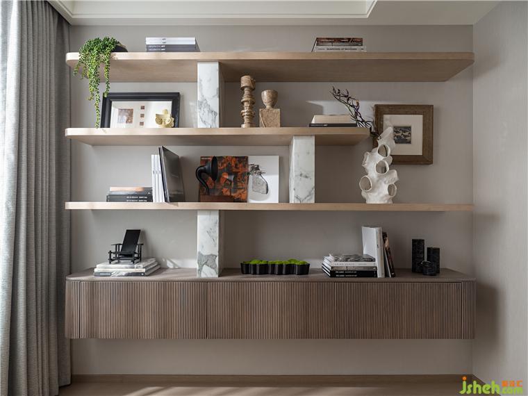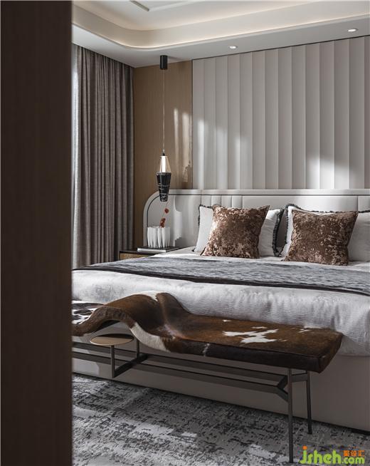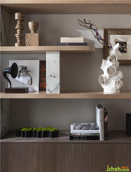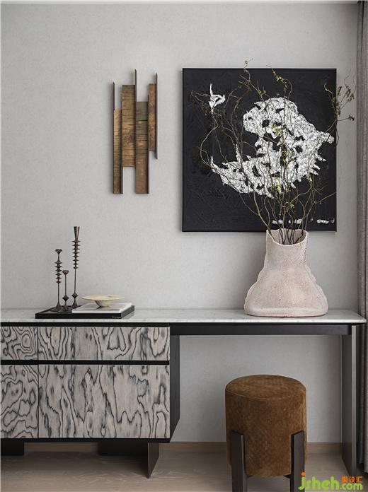 巖石背景墻經(jīng)歷了自然的雕琢澄凈清雅,與手工地毯、石材木飾茶幾穿插對話,濱江澄虹府樣板房設(shè)計從線到面的層次遞進,構(gòu)建了現(xiàn)代奢居的品質(zhì)格調(diào),獨特的氣韻和自然靈性油然而生。
