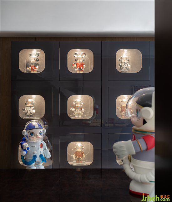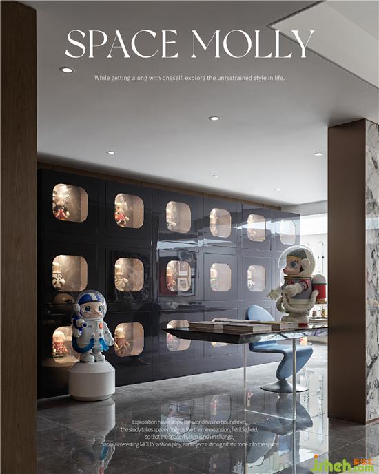 探險從不止步,世界沒有邊界,書房以SPACE MOLLY為主題延伸,靈動自如的場域,使空間節(jié)奏富于變換,陳列趣味的MOLLY潮玩,則為空間注入濃厚的藝術(shù)基調(diào)。