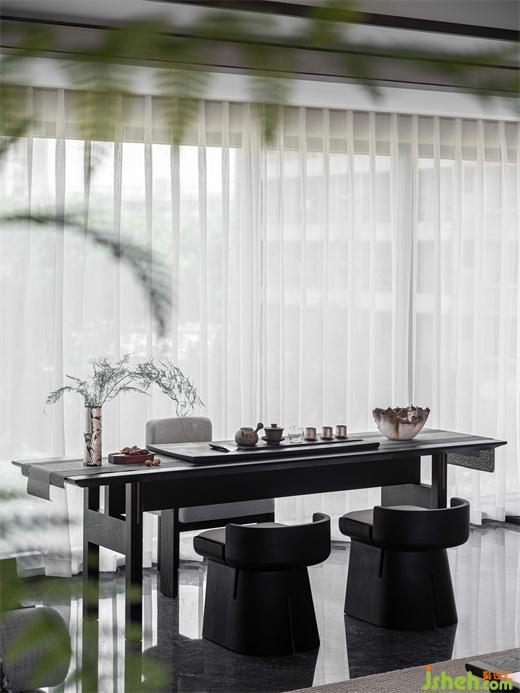設(shè)計(jì)師認(rèn)爲(wèi),家作爲(wèi)銜接情感記憶的空間,應(yīng)打破傳統(tǒng)茶室?guī)淼木嚯x感,形簡(jiǎn)、存意、富有底蘊(yùn),以純粹自然爲(wèi)本,塑造當(dāng)代人的詩(shī)意場(chǎng)景。