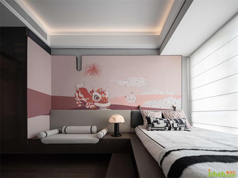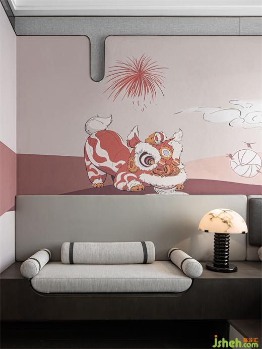 兒童房采用柔和浪漫的色彩爲(wèi)基底,樣板房設(shè)計(jì)以湛江醒獅文化爲(wèi)形,用現(xiàn)代手法進(jìn)行轉(zhuǎn)譯,將藝術(shù)情感註入空間,童話式的意境俏皮有趣,更有求吉納福的美好意願(yuàn)。