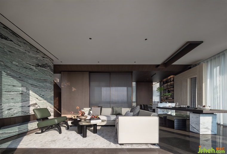 借助石材、布料、木材、皮革和金屬的交織,給予空間新的生命力,于此探索內(nèi)心的平靜與