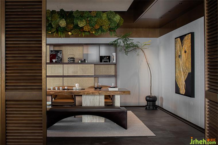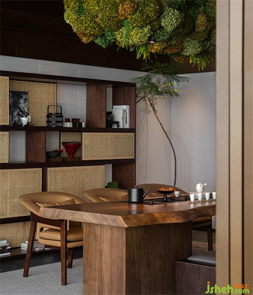 自然氣息的藤編元素與溫潤(rùn)原木、懸掛花藝裝置駐留了一片生機(jī)盎然,會(huì)所設(shè)計(jì)在原始的有機(jī)形態(tài)中迸發(fā)出質(zhì)樸純粹的美感。