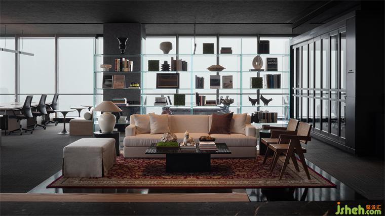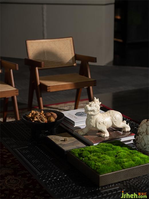 會所設(shè)計穿插擺放的藝術(shù)品,與辦公空建立一場極致的人文對話,成為嚴(yán)謹(jǐn)冷靜一隅的驚喜點綴。