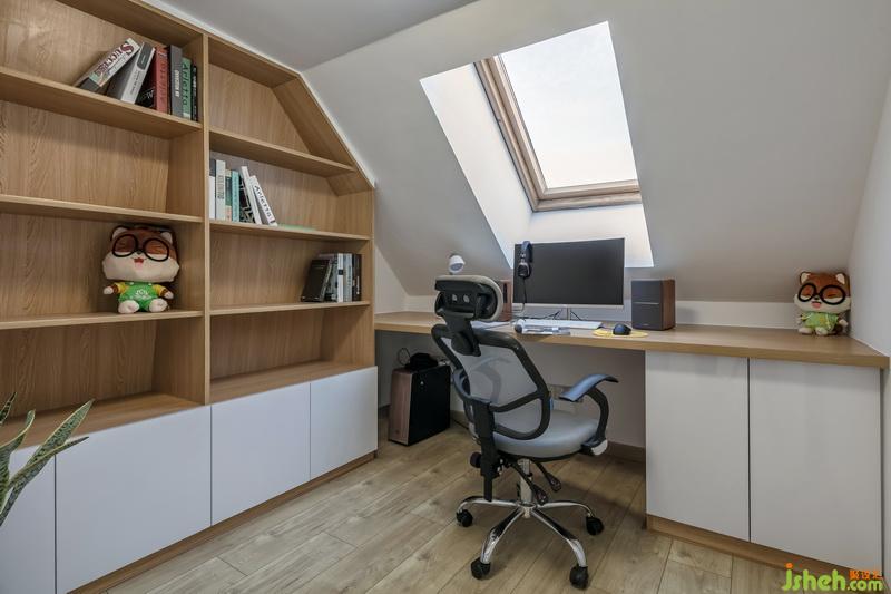 一面書柜墻作為整個(gè)空間的視覺重心,立于客廳,近五米的高度重塑空間維度,使這一頂層挑高空間頓時(shí)有一種復(fù)式大宅的視覺沖擊感;餐廳地面用抬高地面的設(shè)計(jì)手法,讓餐廳與客廳有了自然過渡,同時(shí)餐廳地面選用顯紋啞光實(shí)木地板,讓餐廳空間更具溫暖和愜意的用餐環(huán)境;整個(gè)空間均采用簡潔設(shè)計(jì)手法,化繁為簡,墻體大面積采用乳膠漆刷白,在儲物上采用調(diào)性隱藏收納,讓整個(gè)空間更具整體性。