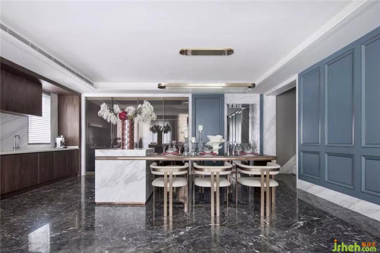 餐廳餐桌大理石臺面與金屬腳搭配冷靜又沉穩(wěn),金屬配色的質(zhì)感,現(xiàn)代感十足,不經(jīng)意的細(xì)節(jié)中舒緩著法式優(yōu)雅。白色的瓷器擺件姿態(tài)萬千,猶如婀娜多姿的舞者,也如同舞者飄逸的裙擺,又如同盛開的花朵,無不呼吸著法式優(yōu)雅,不局限與風(fēng)格就是獨有的風(fēng)格。