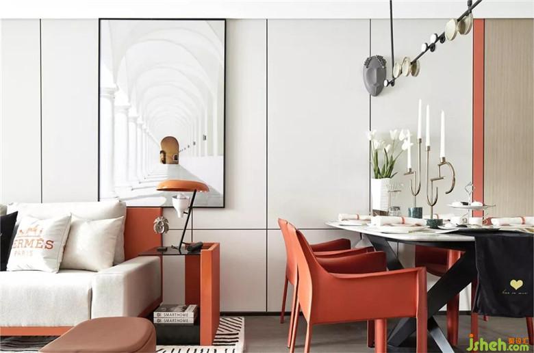 而居所保存生活的記憶,我們通過軟裝陳設,以橙色裝點居所,輔以簡約時尚的家具,藝術(shù)化的飾品小物,敘述生活的溫暖與浪漫。