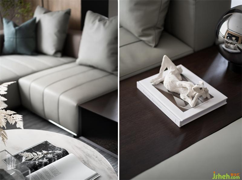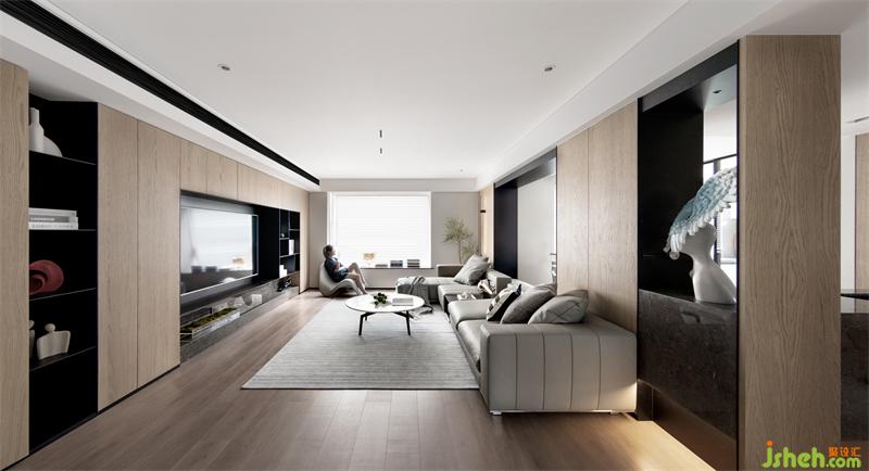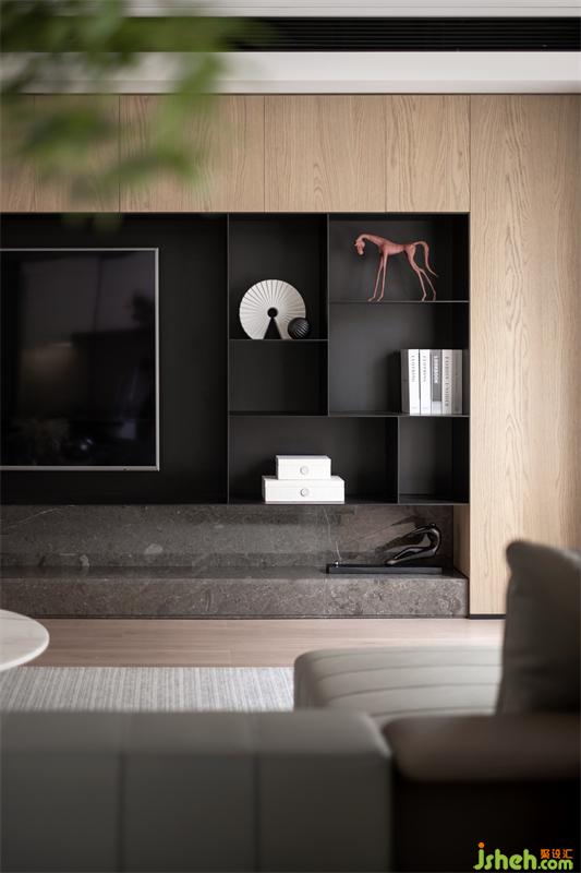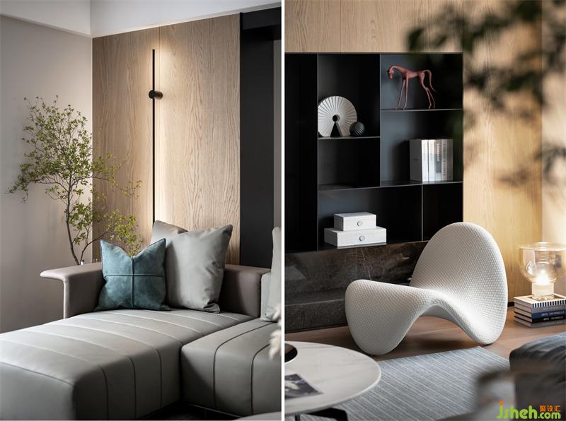 空間以灰白為題,溫潤木系加以著色,素雅簡潔的線條貫穿其中,構建起冷暖平衡的空境韻律。其貌不揚之下,卻承載了生活無盡的豐富深度。