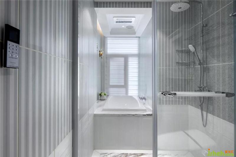 衛(wèi)生間設(shè)計(jì)采用淡綠色的墻布瓷磚進(jìn)行一個(gè)完美的融合而又協(xié)調(diào),素雅二字在這里體現(xiàn)得淋漓盡致。