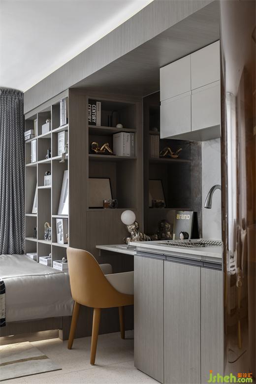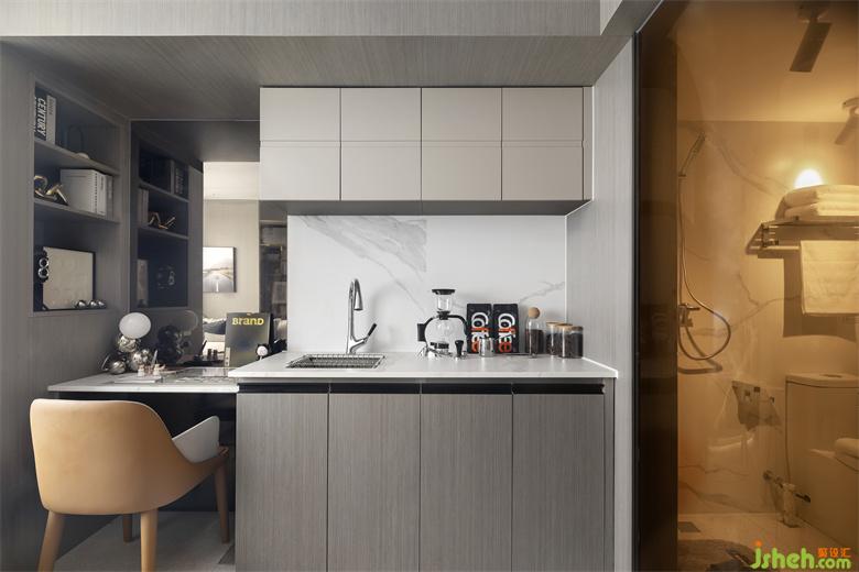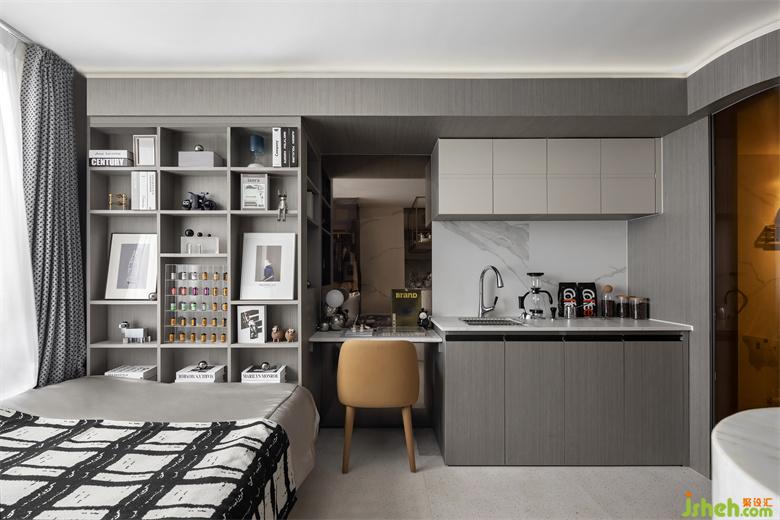 入口廊道處對整個空間布局一覽而進,雅白和淺咖色調彰顯出空間時尚優(yōu)雅的特點。樣板房設計床品采用親膚質地的材質,為主人公打造一個舒適的睡眠環(huán)境……衣柜內陳列了主人公高品位的服裝、眼鏡、手提包等,床邊利用小邊幾打造一個休閑氛圍,吧臺區(qū)域利用空間做二層金屬收納平臺,滿足生活必需品的擺放和收納,使空間時尚沉穩(wěn)中增添秩序感。衛(wèi)生間采用弧形角度,茶色弧形玻璃隔斷在滿足私密性的同時,使得線路流動空間更流暢。廚房以咖啡為主題,我們加以咖啡機、咖啡壺等飾品烘托氛圍,彌漫咖啡香氣,掃走一天的疲憊……書桌區(qū)以攝影為主題,木質肌理飾面板做展示柜,為居住者帶去多樣的生活體驗感,擺放攝影作品和相機,采用了設計感極強的書椅及臺燈來襯托主人公藝術品味....主人公業(yè)余喜歡交流攝影技巧和賞析攝影作品,喜歡與更多的攝影愛好者一同分享攝影的魅力!把日常生活中稍縱即逝的平凡事物轉化為不朽的視覺圖像。攝影就是記錄,只要是熱愛生活,就可以找到“真愛”....