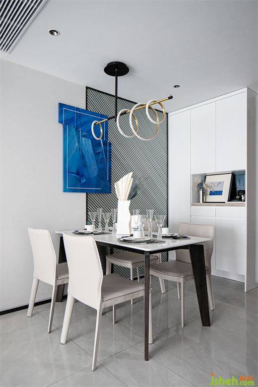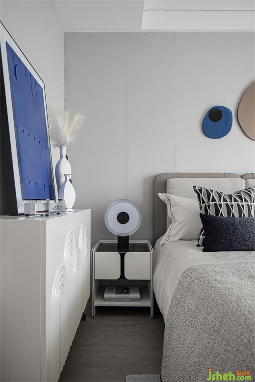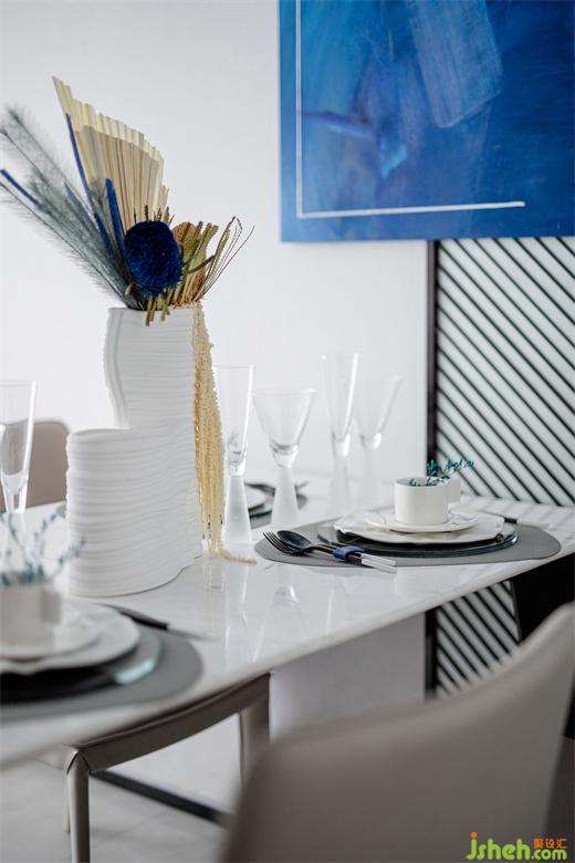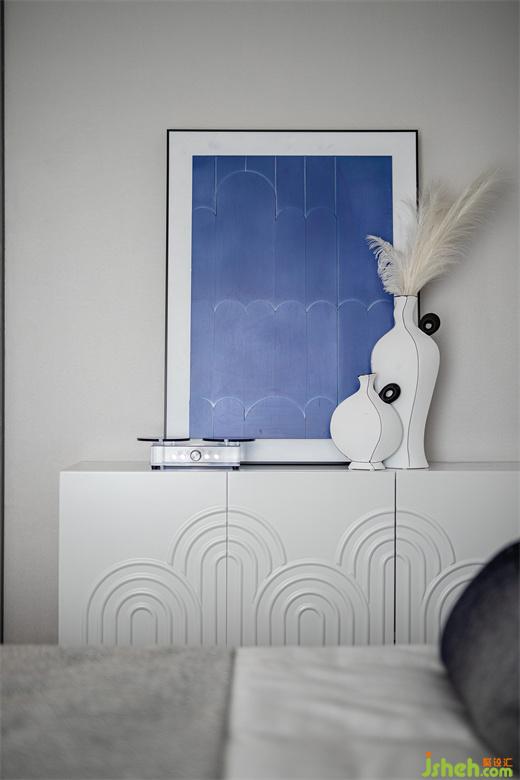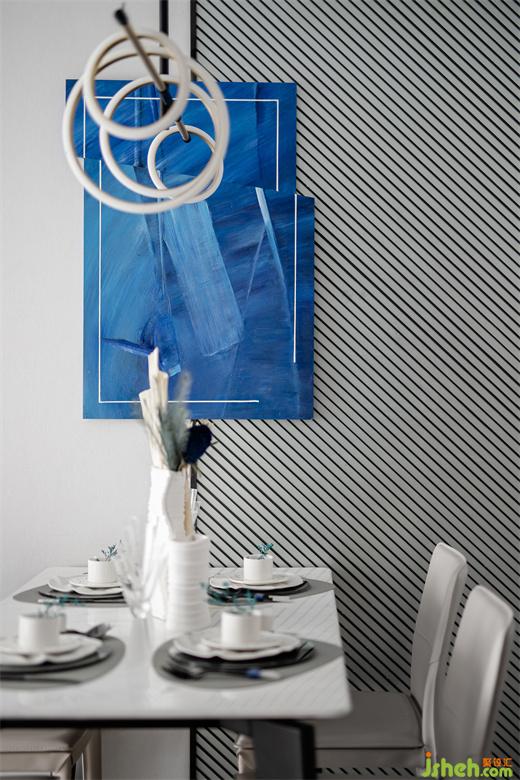 此樣板間設(shè)計(jì)將克萊因藍(lán)灑落在屋內(nèi)各處,靜謐和特別也隨之灑落其中。