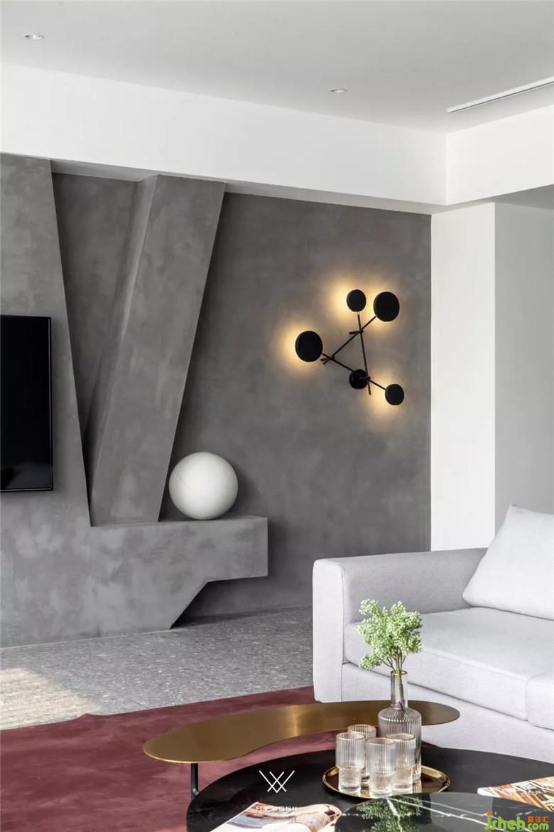 客廳采用極簡(jiǎn)風(fēng)的設(shè)計(jì),黑白灰為主色調(diào),盡顯高級(jí)。電視墻選擇了藝術(shù)漆的設(shè)計(jì),能把思緒一下子拉回到孩童時(shí)期,返璞歸真。 紅色的夸張?jiān)煨偷囊巫狱c(diǎn)綴著整個(gè)客廳,使得整個(gè)客廳不會(huì)顯得太過拘謹(jǐn)。