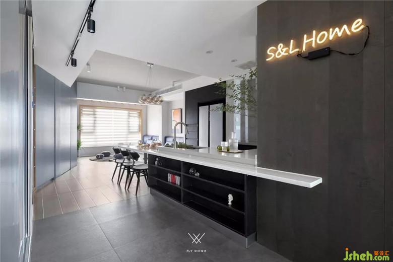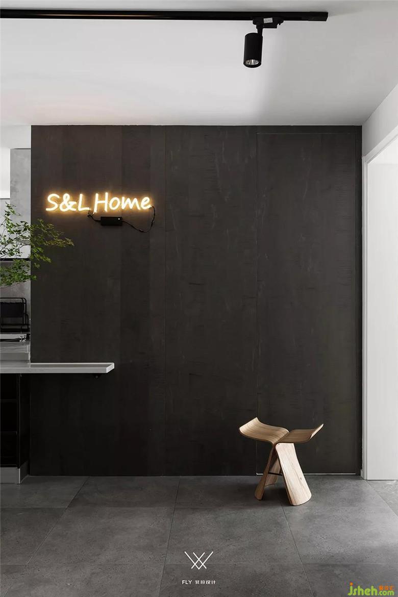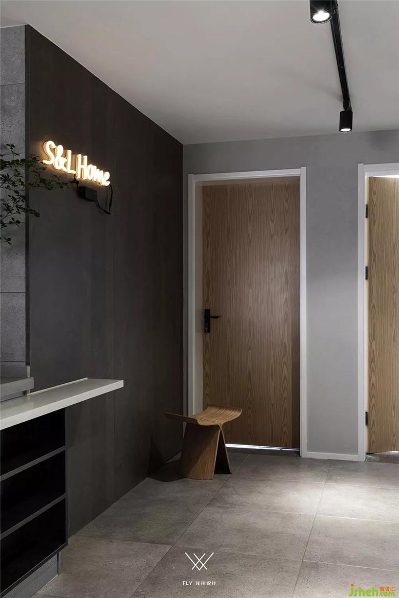 衛(wèi)生間隱形處理,以木飾面覆以整面墻,解決入門即廁的問(wèn)題,統(tǒng)一的區(qū)域與孫先生、盧女士之家"S&L Home"的裝點(diǎn)雋雅溫馨。延續(xù)餐廚的筆觸,臺(tái)面穿插到玄關(guān)背景,增強(qiáng)區(qū)域?qū)哟胃小?