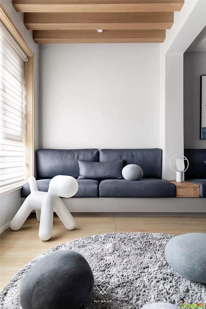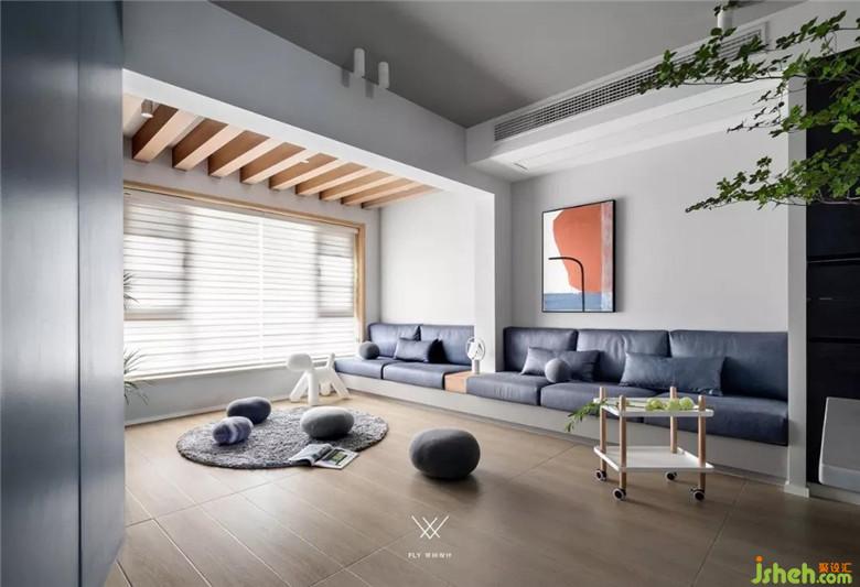 問(wèn)題的形成便是答案的一部分”,設(shè)計(jì)亦是如此。原陽(yáng)臺(tái)承重墻的存在使空間被分割,設(shè)計(jì)師摒去常規(guī)沙發(fā),以地臺(tái)的方式將承重墻嵌入其中,放置沙發(fā)墊打破空間零散性。