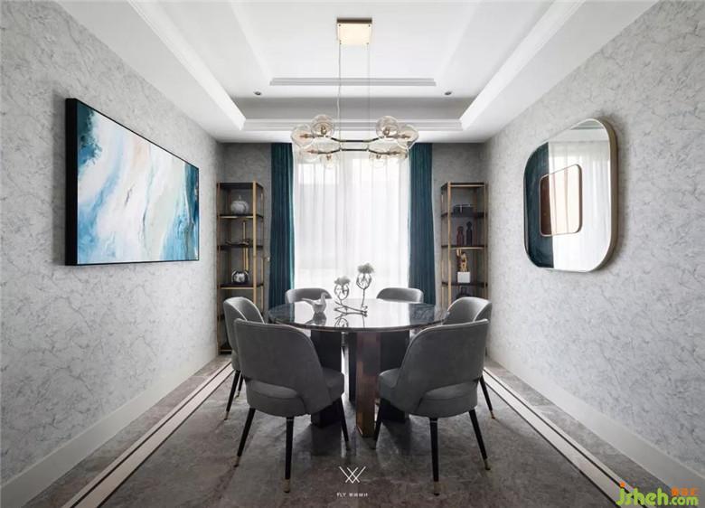 圓形餐桌的形式,兩側墻面的裝飾掛鏡和掛畫,打破餐廳原本比較悶的墻面環(huán)境。細節(jié)上依舊延續(xù)輕奢氣質,窗簾延續(xù)客廳的墨綠色。 共4頁: 上一頁1234下一頁
