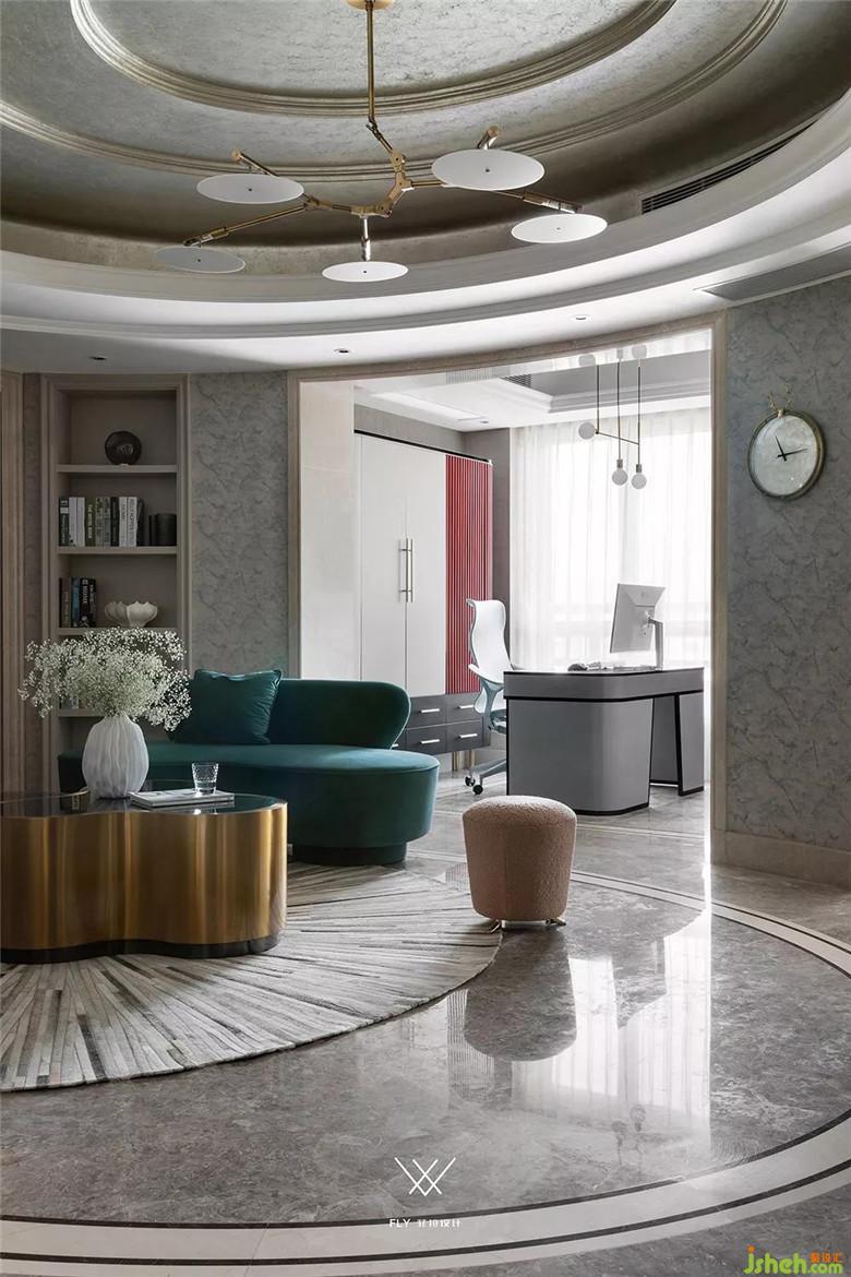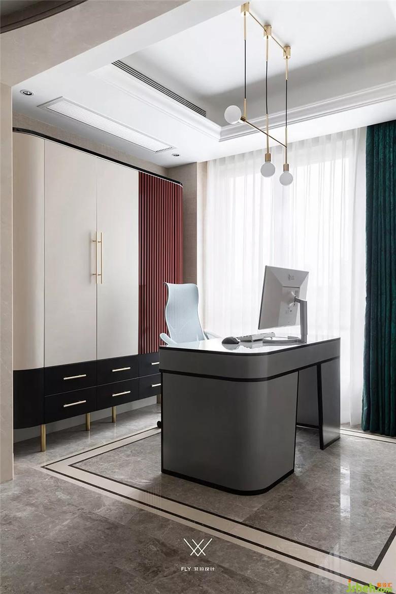 書房更多凸顯的是先進(jìn)時(shí)尚與沉穩(wěn)的既視感,到落地上是用書柜和書桌來實(shí)現(xiàn)。