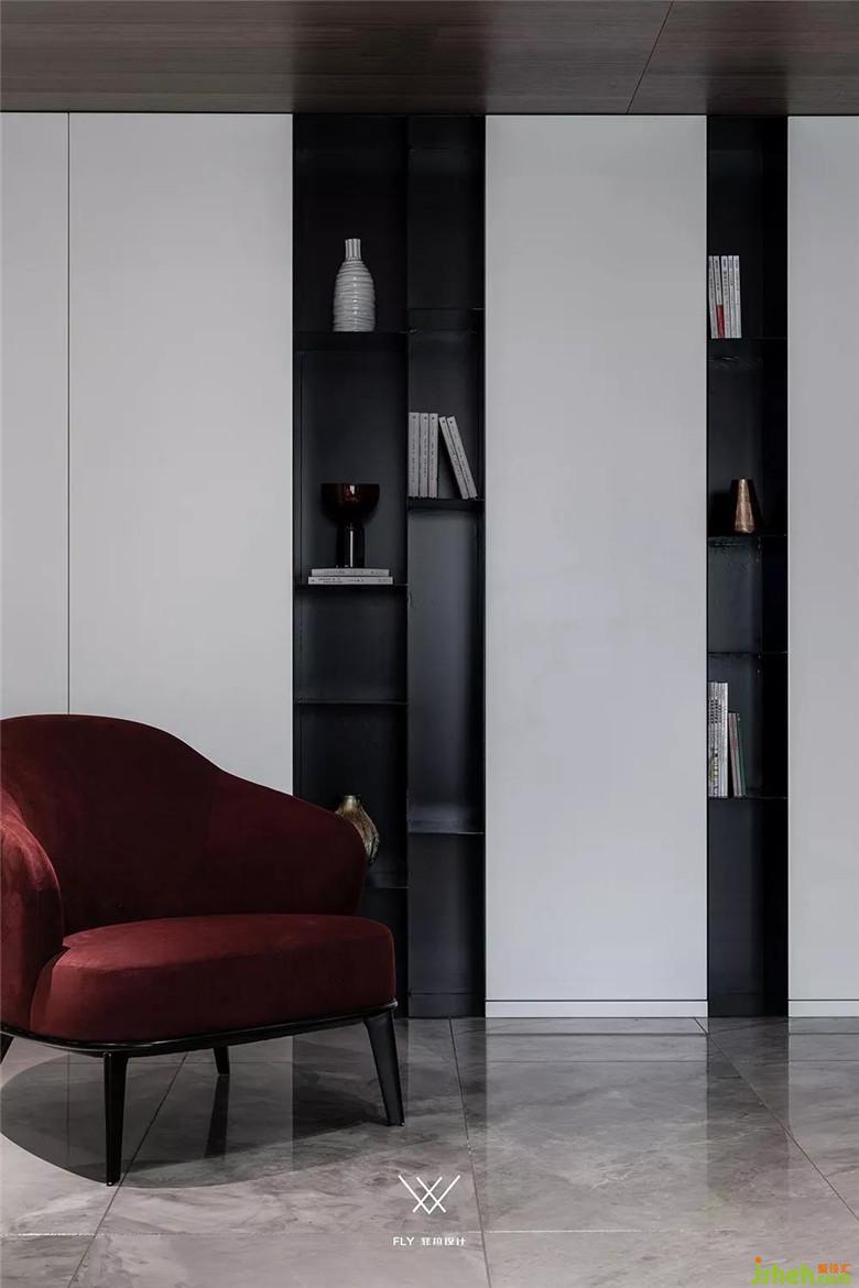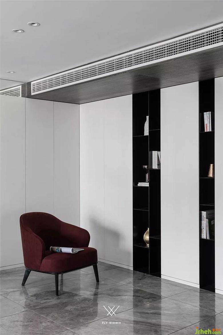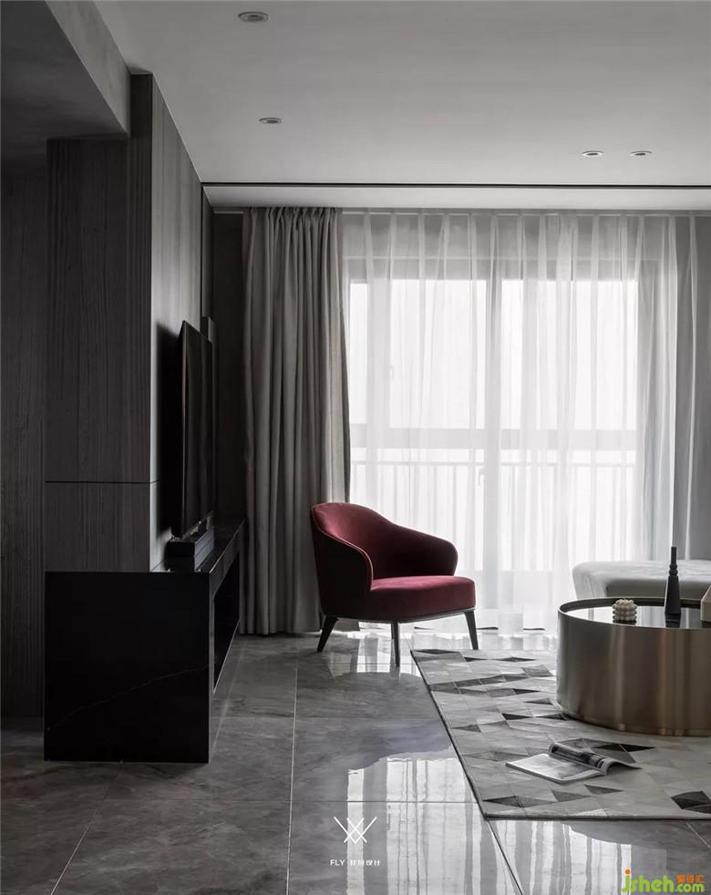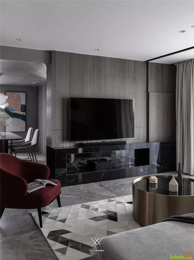 如果看設(shè)計(jì)圖的話能夠看到電視機(jī)在背景墻的三分之一處。主要原因是沙發(fā)背景墻和電視背景墻長(zhǎng)度不一樣,放在這個(gè)位置能夠讓電視的中軸線和沙發(fā)中心相同,看電視更舒服。電視背景右邊多余的部分用凹槽加上高低不平的塊面去處理,讓這部分不會(huì)顯的突兀。