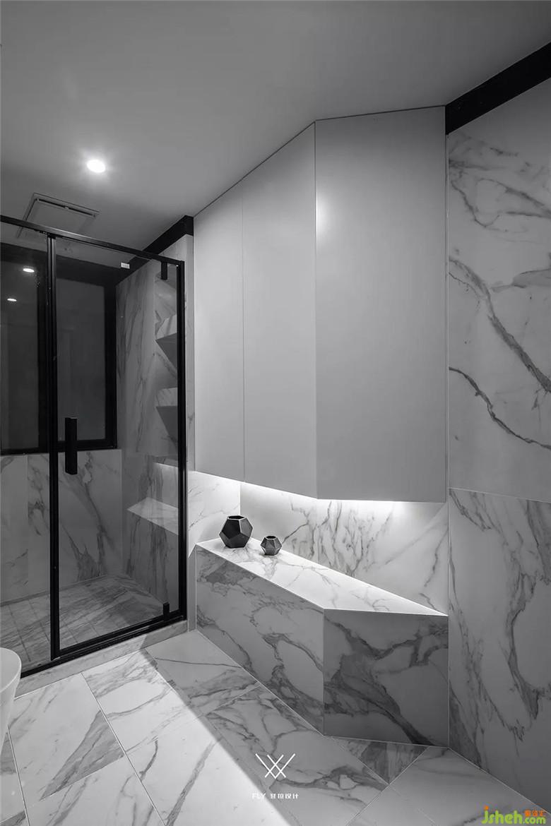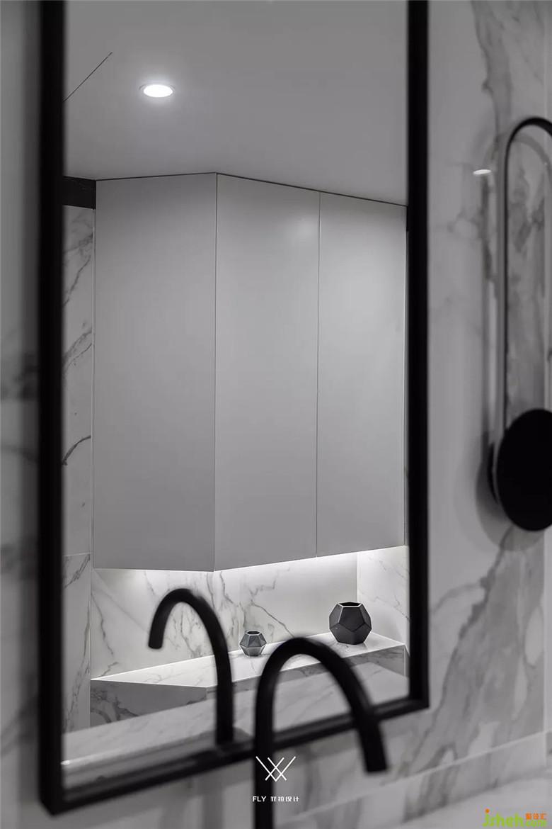 衛(wèi)生間有時(shí)候會(huì)隨處擺放東西而導(dǎo)致雜亂無(wú)章,為東西太多無(wú)處安放而煩惱。本案在衛(wèi)生間設(shè)計(jì)了一個(gè)容量足夠大的柜子,能夠?yàn)檫@些小東西找到很好的容身之所。從柜子結(jié)構(gòu)上來(lái)看,還有一個(gè)在進(jìn)入衛(wèi)生間的時(shí)候視線經(jīng)過(guò)柜子斜面,有一個(gè)緩沖的作用。