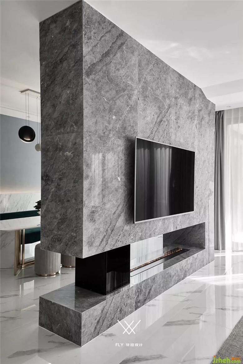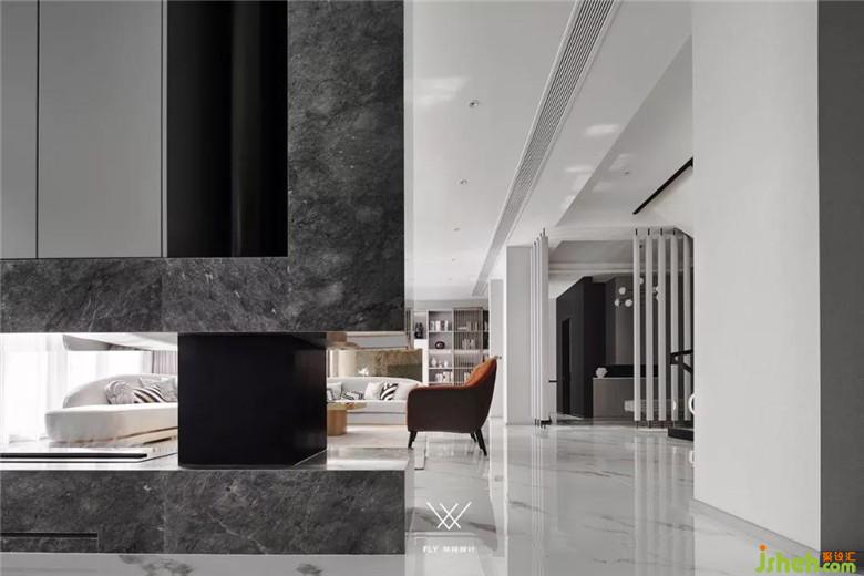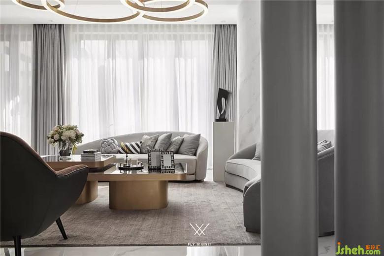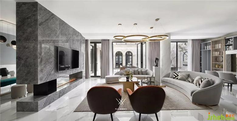本案定義為現(xiàn)代輕奢風(fēng),現(xiàn)代輕奢是將材料、色彩、燈光及元素進(jìn)行簡化,以實(shí)用的功能性家具為主,用簡潔的視覺效果營造出時(shí)尚前衛(wèi)的家居氛圍,用優(yōu)雅低調(diào)最受青睞的高級(jí)灰把持全局,使得整體空間顯得高雅、深邃、寧靜、性感。中性而又低奢的黃銅拉絲材質(zhì)一直伴隨著主旋律而存在,大面積的高級(jí)灰會(huì)稍顯缺乏生活氣息,所以在不同的空間中設(shè)計(jì)師加入了不同的亮色來點(diǎn)綴,在拉開空間層次感的同時(shí)賦予了每個(gè)空間不同的靈魂。