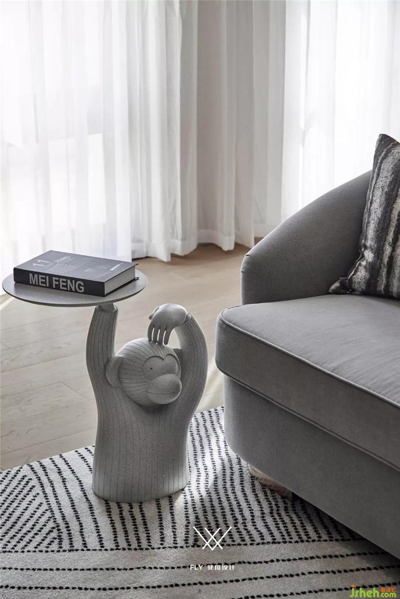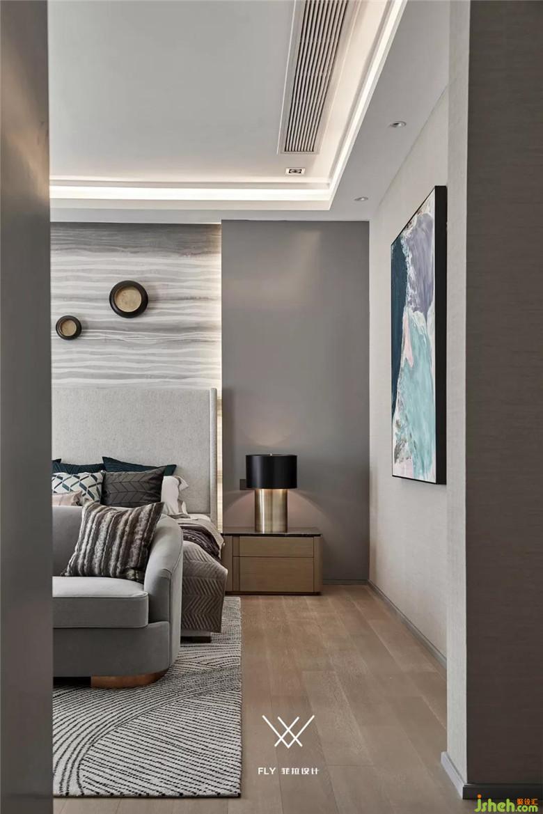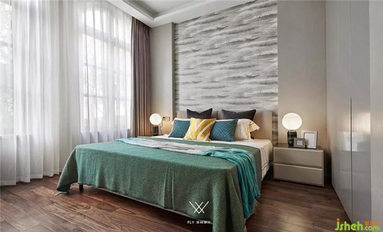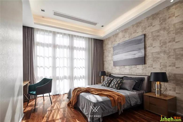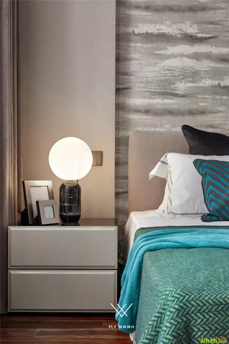 作為睡眠空間,主旋律應該是寧靜和諧。原來需要穿過臥室才能到達二樓露臺,干擾到了臥室的生活,主臥室的門直對樓梯口,一開門便是臥室的睡眠區(qū),破壞了臥室的私密性,主臥衣帽間過小,而且沒有通風和采光。在與業(yè)主溝通之后,主臥室采用的是同色系的色彩對比,用寧靜平和的藏青和藍色作為點綴,床背景利用抽象水波紋壁紙和圓形掛件讓人聯(lián)想到印象派畫家莫奈的《日出·印象》一副平靜祥和的景象!