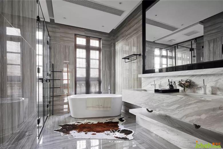 衛(wèi)生間淋浴、坐便獨立分離,雙臺盆設(shè)計加大面積的化妝鏡,讓原本寬敞的衛(wèi)生間更加通透明亮。