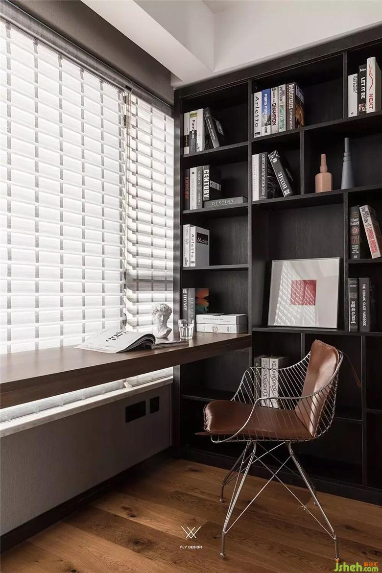書房就是一個(gè)用來思考的地方,為了讓使用者快速冷靜下來,設(shè)計(jì)師用了更深的色彩,來使思緒更加清晰。